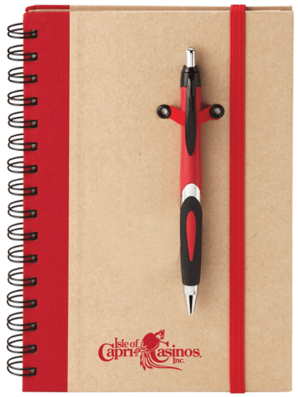 FEATURES : Recycled eco-friendly cardboard lined journal paper pen combo has a ballpoint pen made from recycled paper/corn starch. 70% recycled hard cover and 50% recycled interior. Eco-friendly journal has an elastic pen loop and 80 white lined sheets